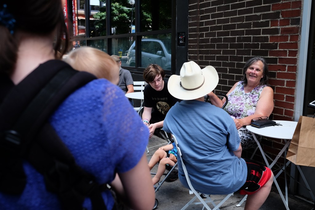 We walked around downtown for a while. I had to laugh because we were such a big group! Four adults, three teens, three kids and two babies! XD