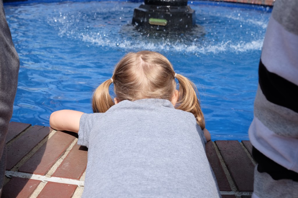 We walked around the downtown area for a while. There is a fountain in the square, so we went there to cool down. πŸ˜‰ Yoveil and Dovid were obsessed with the water.