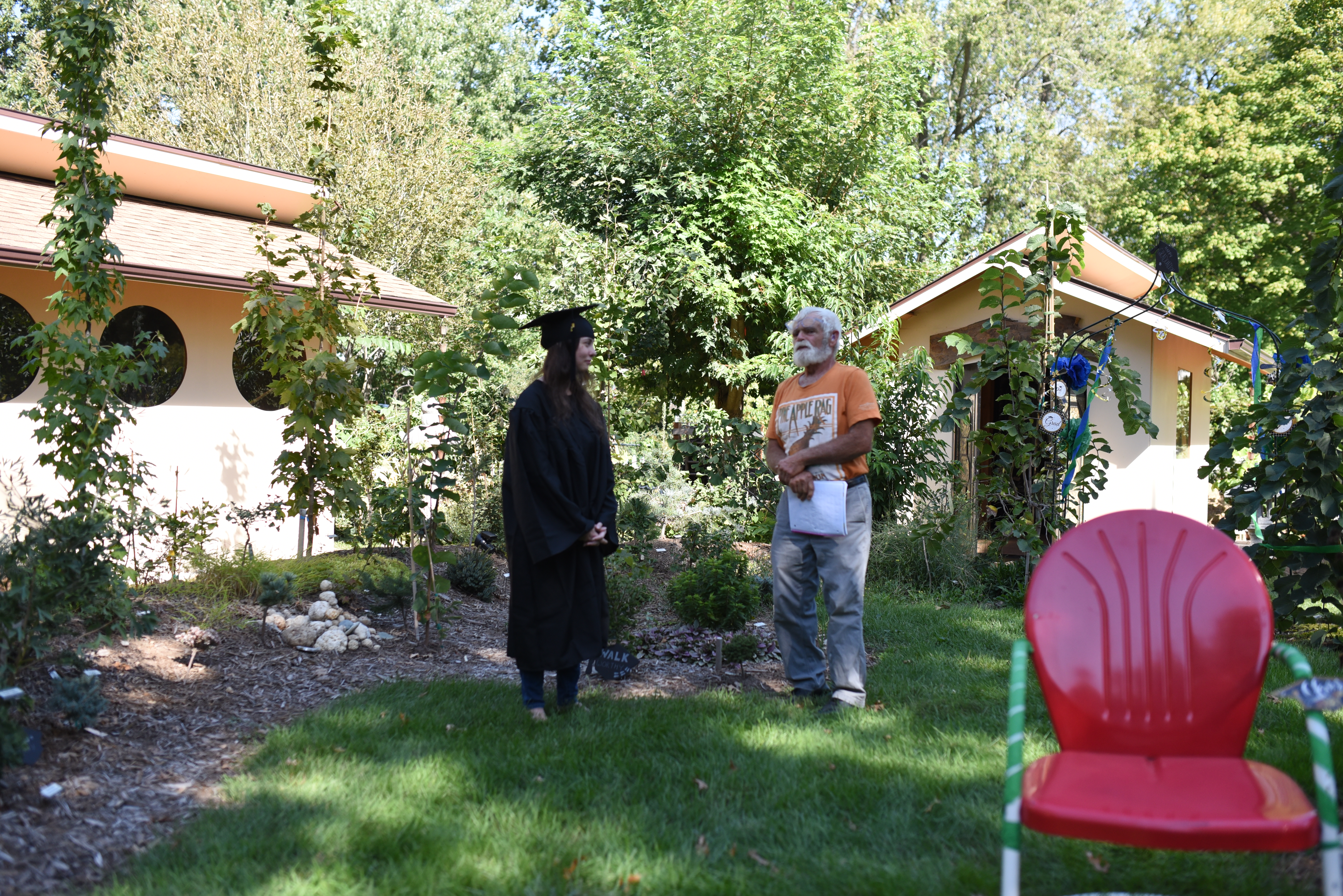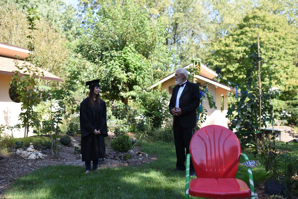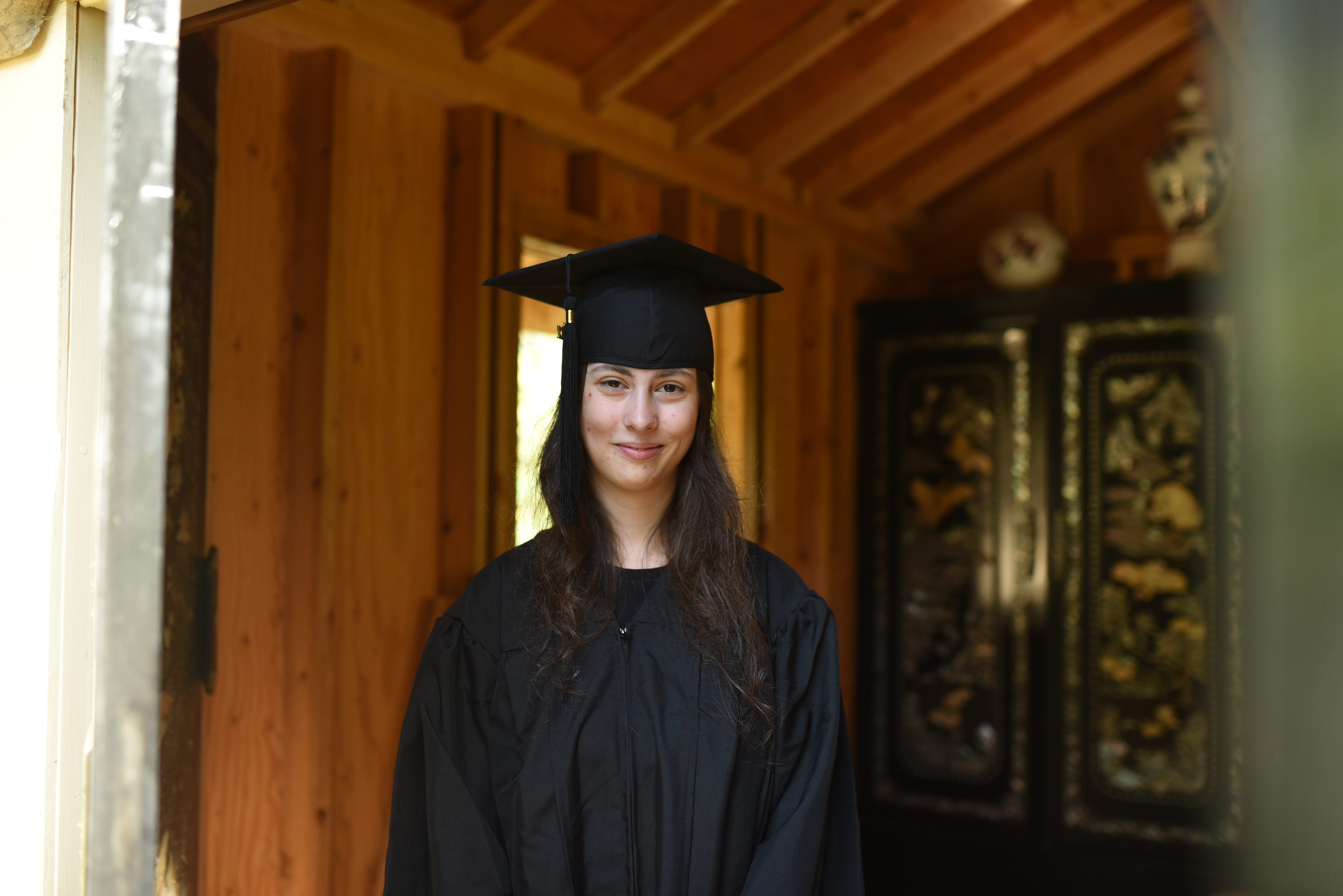 I changed into my cap and gown (and Baruch promptly laughed at me) and stood inside the teahouse.