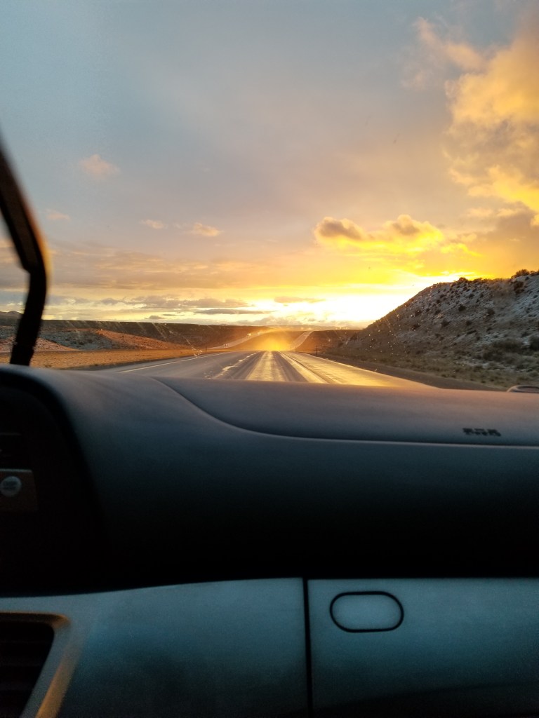 Day Five. The last day of vacation had come and I was not looking forward to going home (especially to face my dreaded interviews). We got donuts for breakfast and spent hours and hours driving towards Utah and listening to AIO. And reading. I’d brought along a bunch of birth books that I was planning on making good progress on but instead didn’t open them and re-read Red Rock Mysteries. XD Plans fail sadly….