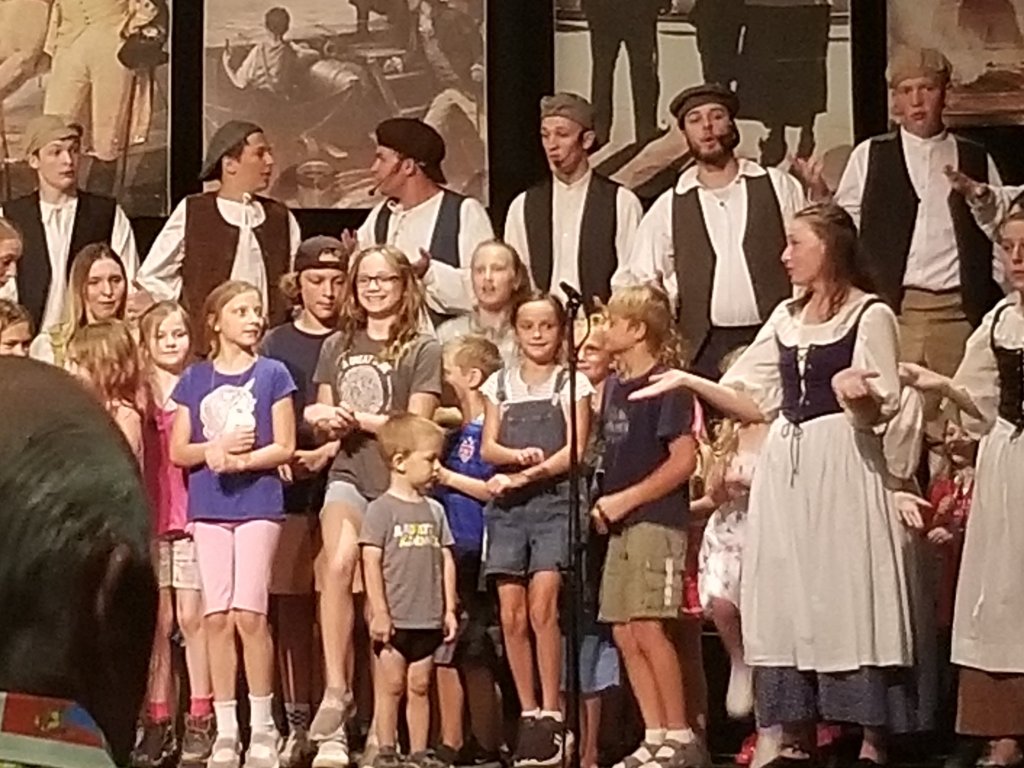 Saturday before the 4th we attended a play about patriotism and such. It was really neat. They had a part where all the kids in the audience were invited up on stage. Dovid was THRILLED. He was sooo cute!