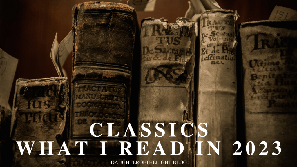 The classics are one of my favorite things to read. Jehosheba discovered them when she was twelve (and read Les Miserables) and introduced me to them. At first, I thought they were boring and long, but as I continued to read them, I fell in love. I read so many amazing classics in 2023. Which ones have you read? Do you enjoy classics?